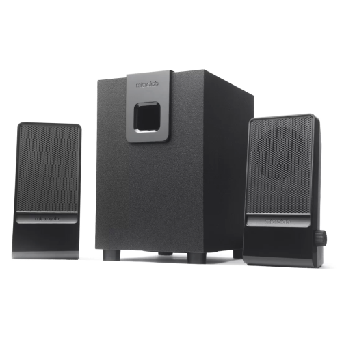 Microlab M-100 - акустическая система формата 2.1. Лаконичный дизайн и классическая геометрия акустики делают модель отличным решением при выборе системы для дома или офиса. Сателлиты выполнены в slim дизайне, устойчивые и компактные. Каждый из сателлитов оснащен широкополосным динамиком, воспроизводящим высокие и средние частотные диапазоны звука. Для защиты от внешнего воздействия они закрыты алюминиевой матовой решёткой, устойчивой к механическим повреждениям. На левой боковой панели одного из сателлитов расположен регулятор уровня басов, а на правой - регулятор громкости звука. Сабвуфер выполнен из МДФ-плиты и отделан фактурным покрытием тёмно-серого цвета. Имеет форму перевёрнутого параллелепипеда, устанавливается на резиновые ножки 1,5 см. Динамик низкочастотной колонки выведен вниз. Система подключается к любому источнику, имеющему 3,5 мм jack интерфейс. Идеально воспроизводит звук от таких источников как TV, CD/DVD/mp3/mp4 плеер, ПК или ноутбук.