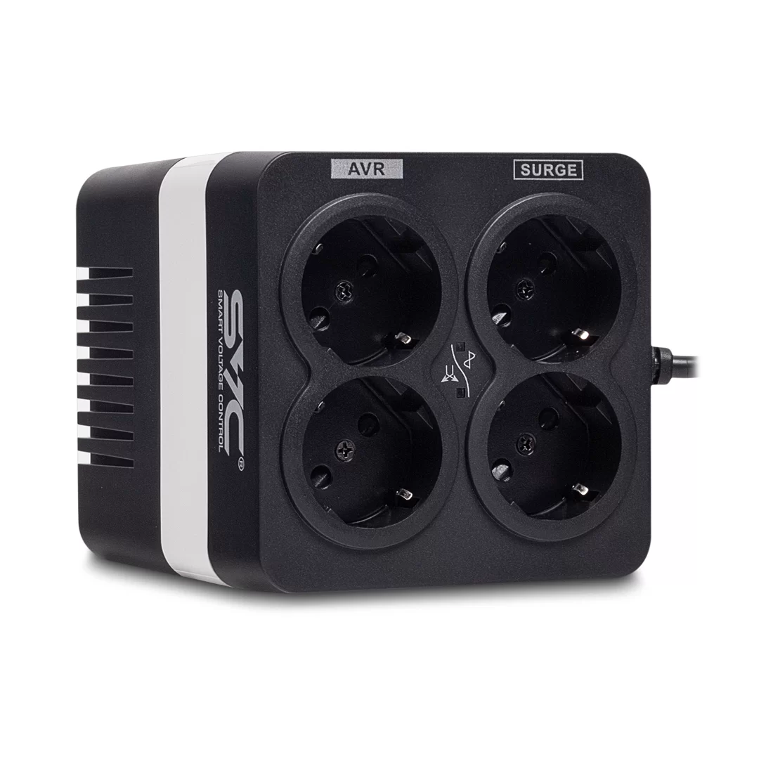 Стабилизатор напряжения SVC AVR-1008-U Устройство, получающее питание от городской сети и выдающее на своём выходе уже отфильтрованное, стабильное напряжение, не зависящее от скачков напряжения на входе. Качество сетевого напряжения в Казахстане оставляет желать лучшего. Часто случающиеся скачки напряжения способны вывести из строя блоки питания, электродвигатели, трансформаторы электрических устройств. Использование стабилизаторов от компании SVC надёжно защитит ваше дорогостоящее оборудование. Данная модель стабилизатора имеет 4 выходных разъема с функцией стабилизации и сетефого фильра.