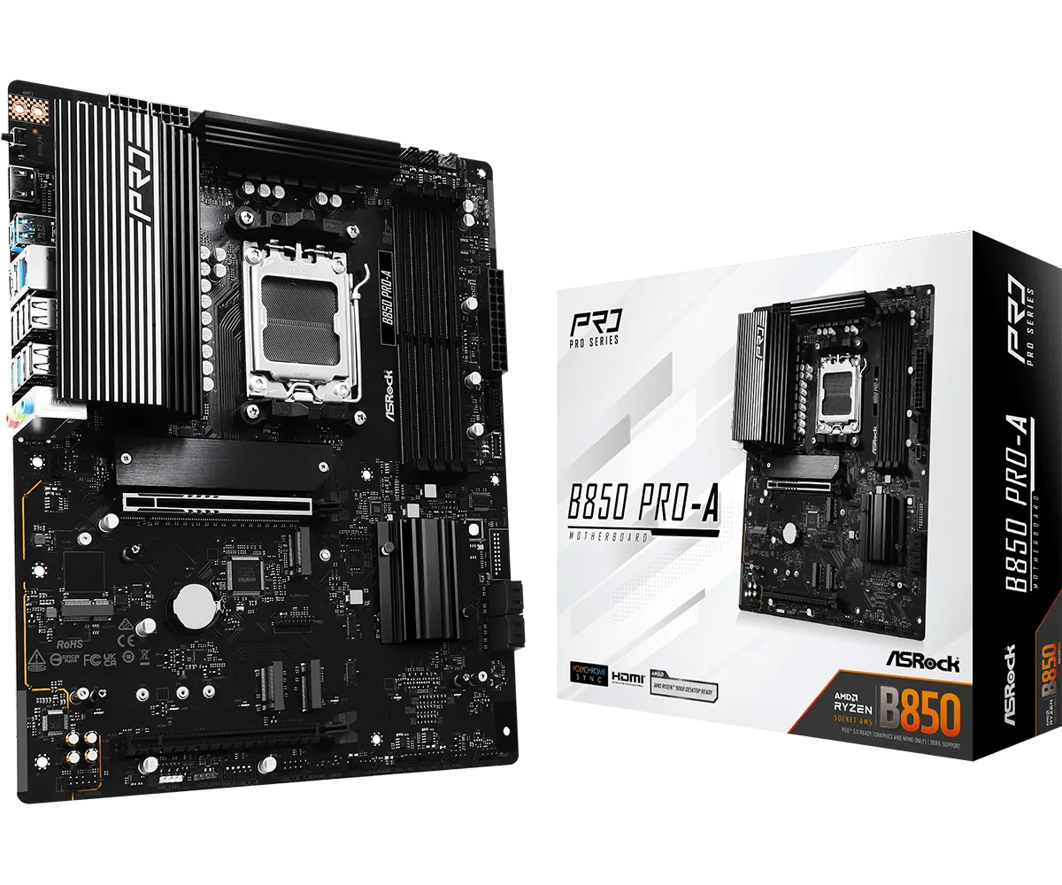 Материнская плата ASRock B850 PRO-A AM5 4xDDR5 4xSATA 3xM.2 1xUM.2 18xUSB 1xHDMI ATX
