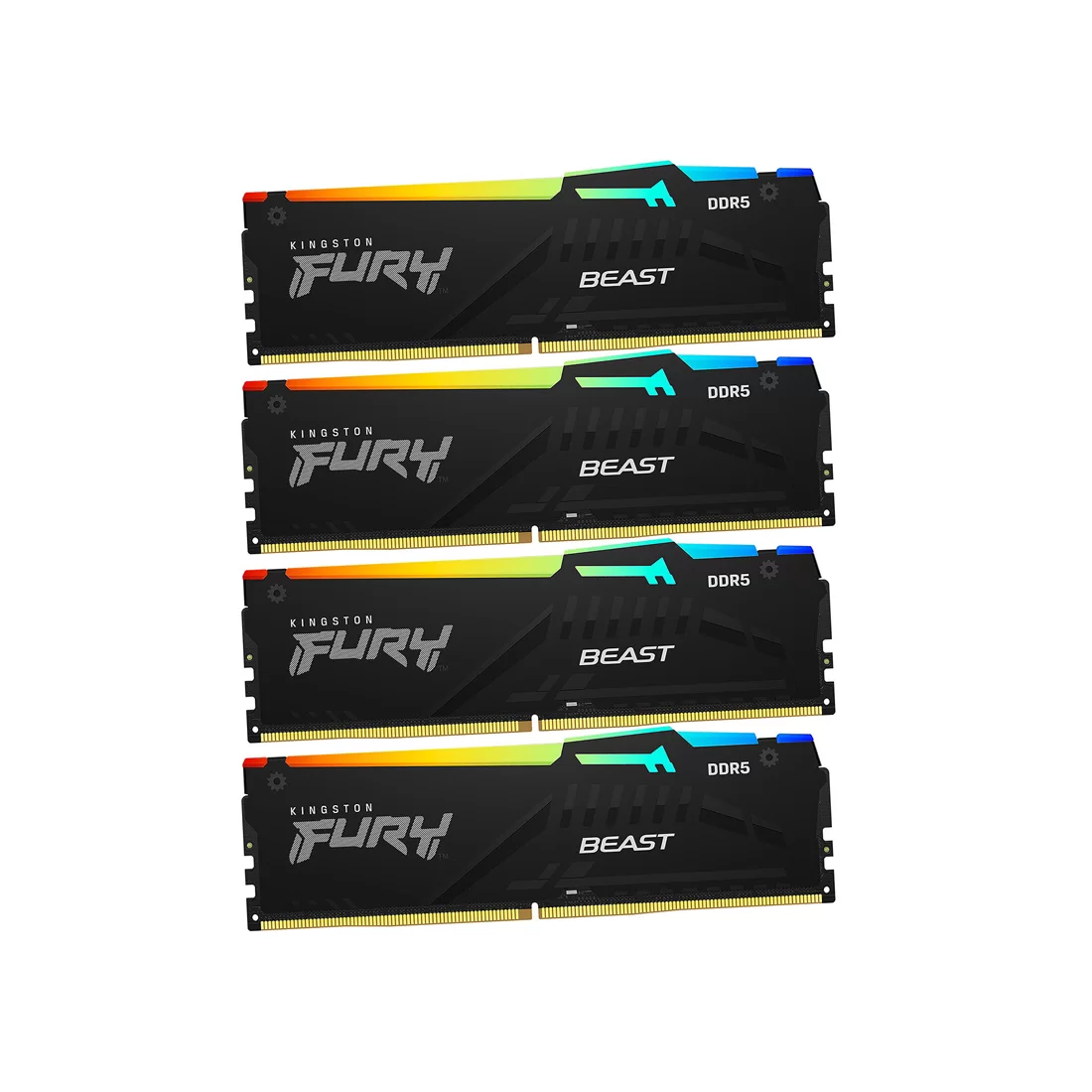 DDR-5 DIMM 128 GB 5600 MHz Kingston Fury Beast RGB, 4x 32 GB Kit, Black, BOX