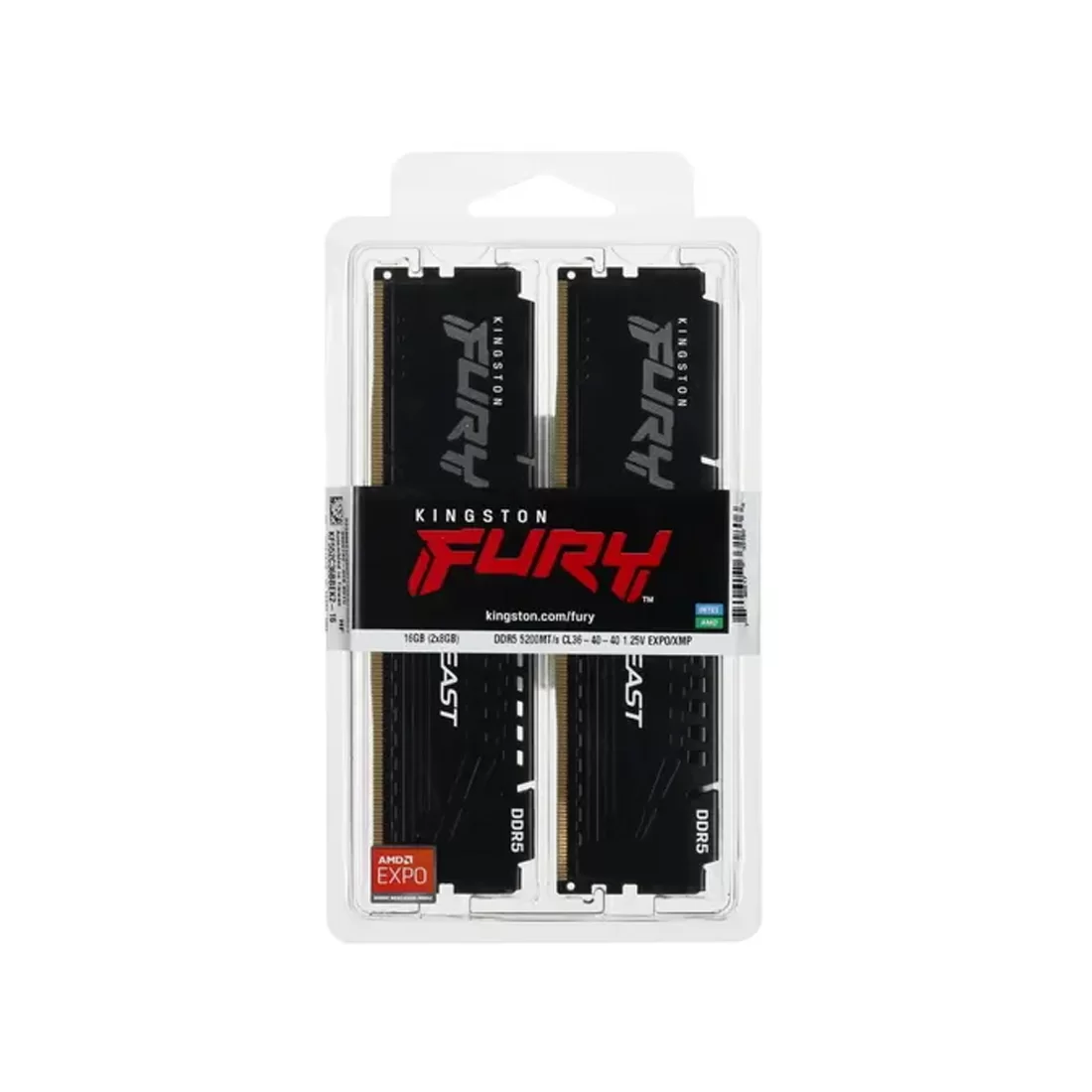 DDR-5 DIMM 16 GB 5200 MHz Kingston Fury Beast, 2x 8 GB Kit, Black, BOX