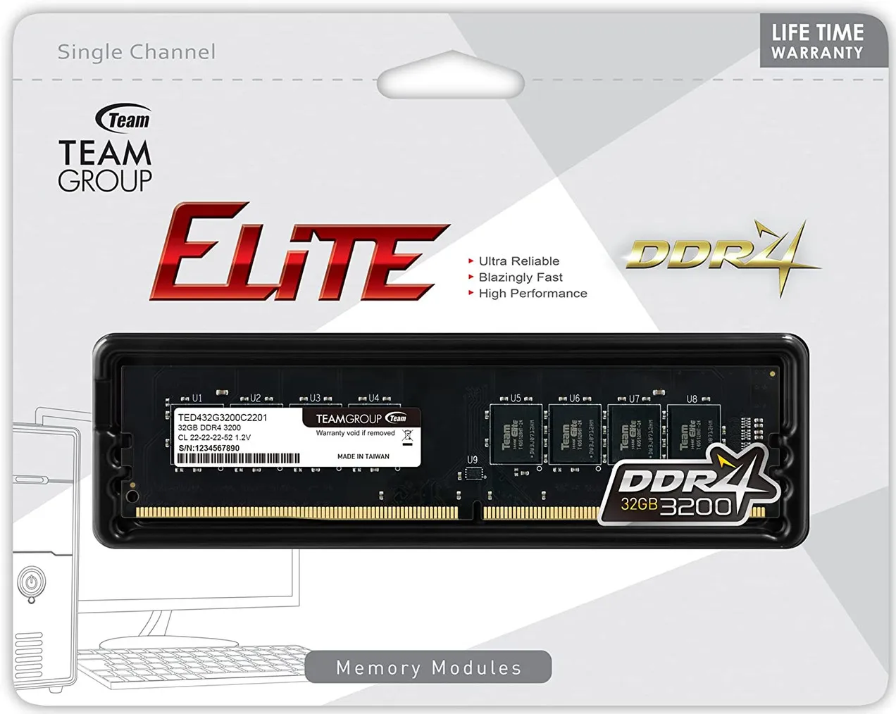Оперативная память 32GB 3200MHz DDR4 Team Group ELITE PC4-25600 CL22 TED432G3200C2201