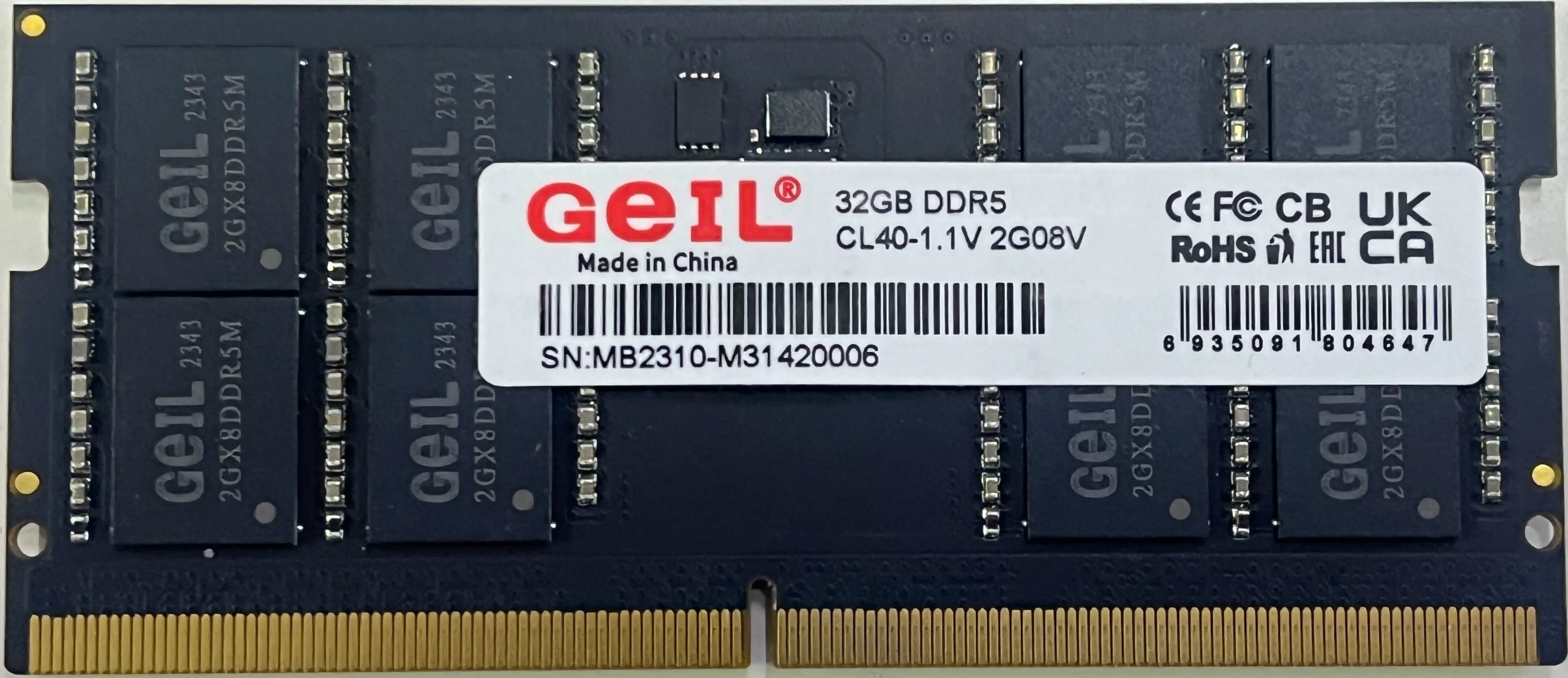 Оперативная память для ноутбука 16GB GEIL 5200MHz DDR5 SO-DIMM PC5-41600 GS516GB5200C42S Bulk