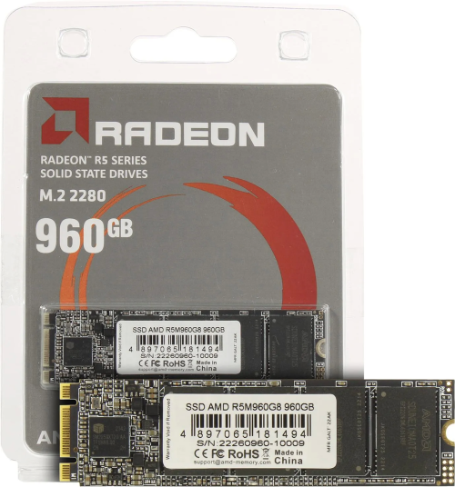 Твердотельный накопитель 960GB SSD AMD RADEON R5 M.2 2280 SATA3 R530Mb/s, W500MB/s R5M960G8