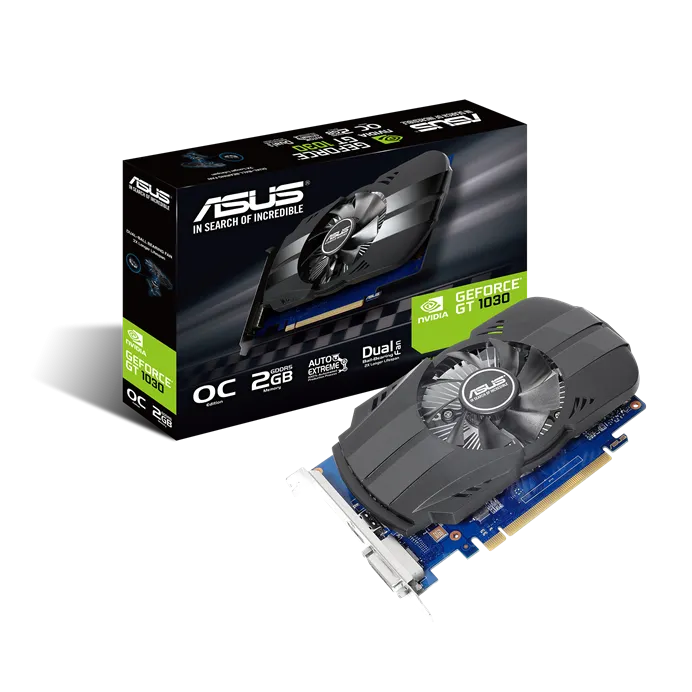 Видеокарта ASUS GeForce GT1030 Phoenix Fan OC Edition 2GB 64 bit DVIx1 HDMIx1 DDR5 PH-GT1030-O2G