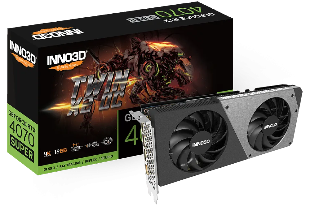Видеокарта Inno3D GeForce RTX4070 SUPER Twin X2 OC, 12G GDDR6X HDMI 3xDP N407S2-126XX-186162N
