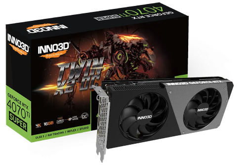 Видеокарта Inno3D GeForce RTX4070Ti SUPER Twin X2 OC, 16G GDDR6X HDMI 3xDP N407TS2-166XX-186156N